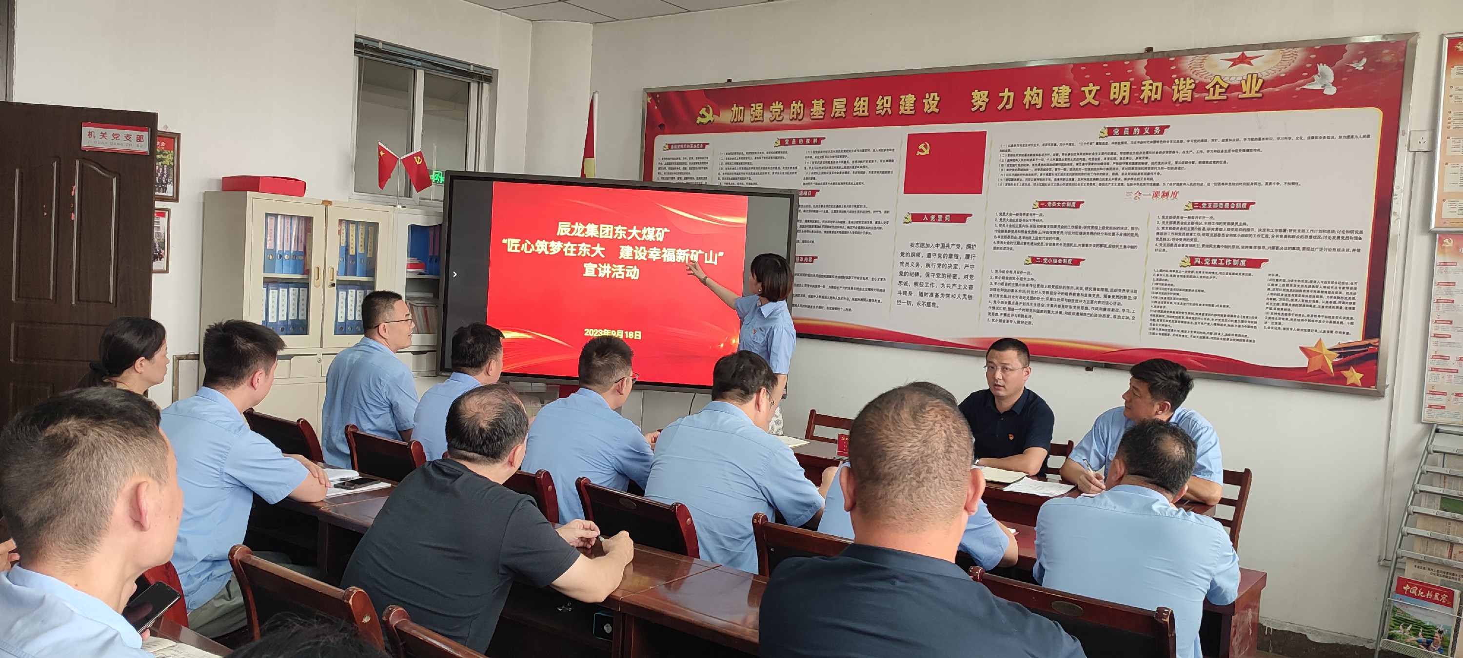 9月20日,山東滕州辰龍能源集團有限公司東大煤礦機關(guān)黨支部開展“匠心筑夢在東大、建設(shè)幸福新礦山”宣講活動。