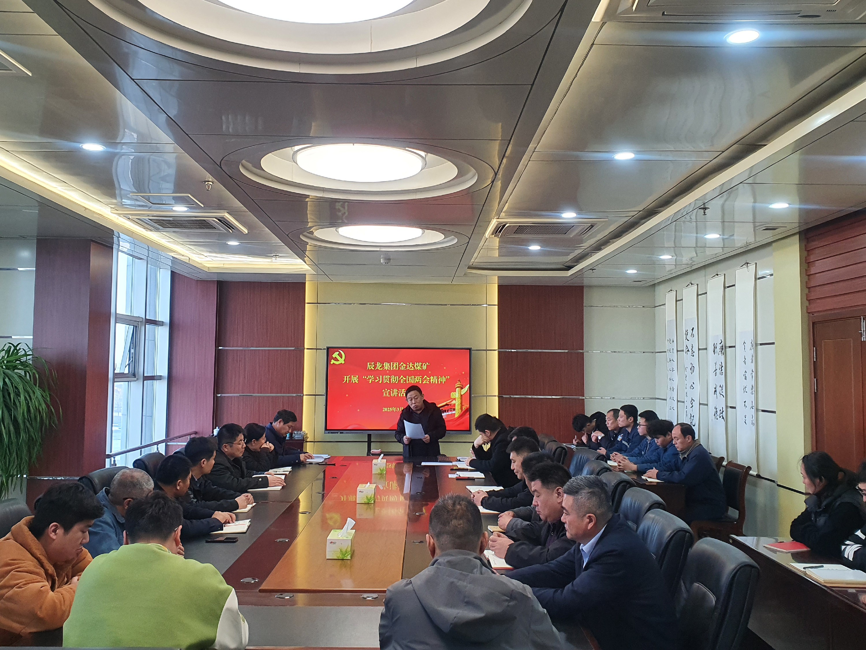 為深入學習貫徹全國"兩會"精神,積極宣傳黨的政策方針,3月19日,金達煤礦開展學習貫徹全國"兩會"精神宣講活動。公司后勤部門黨員干部職工、入黨積極分子30余人聆聽宣講。