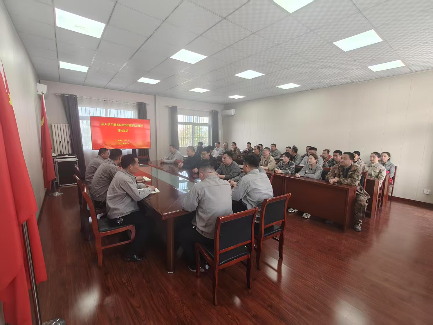 為深入學(xué)習(xí)貫徹全國“兩會(huì)”精神,提升黨員政治素養(yǎng),加強(qiáng)黨支部思想建設(shè),3月24日,鑫巖公司經(jīng)營黨支部開展深入學(xué)習(xí)貫徹2025年度全國“兩會(huì)”精神主題宣講活動(dòng),活動(dòng)由支部書記孫廣利主持并宣講,公司黨員干部、職工代表共30余人聆聽了宣講。