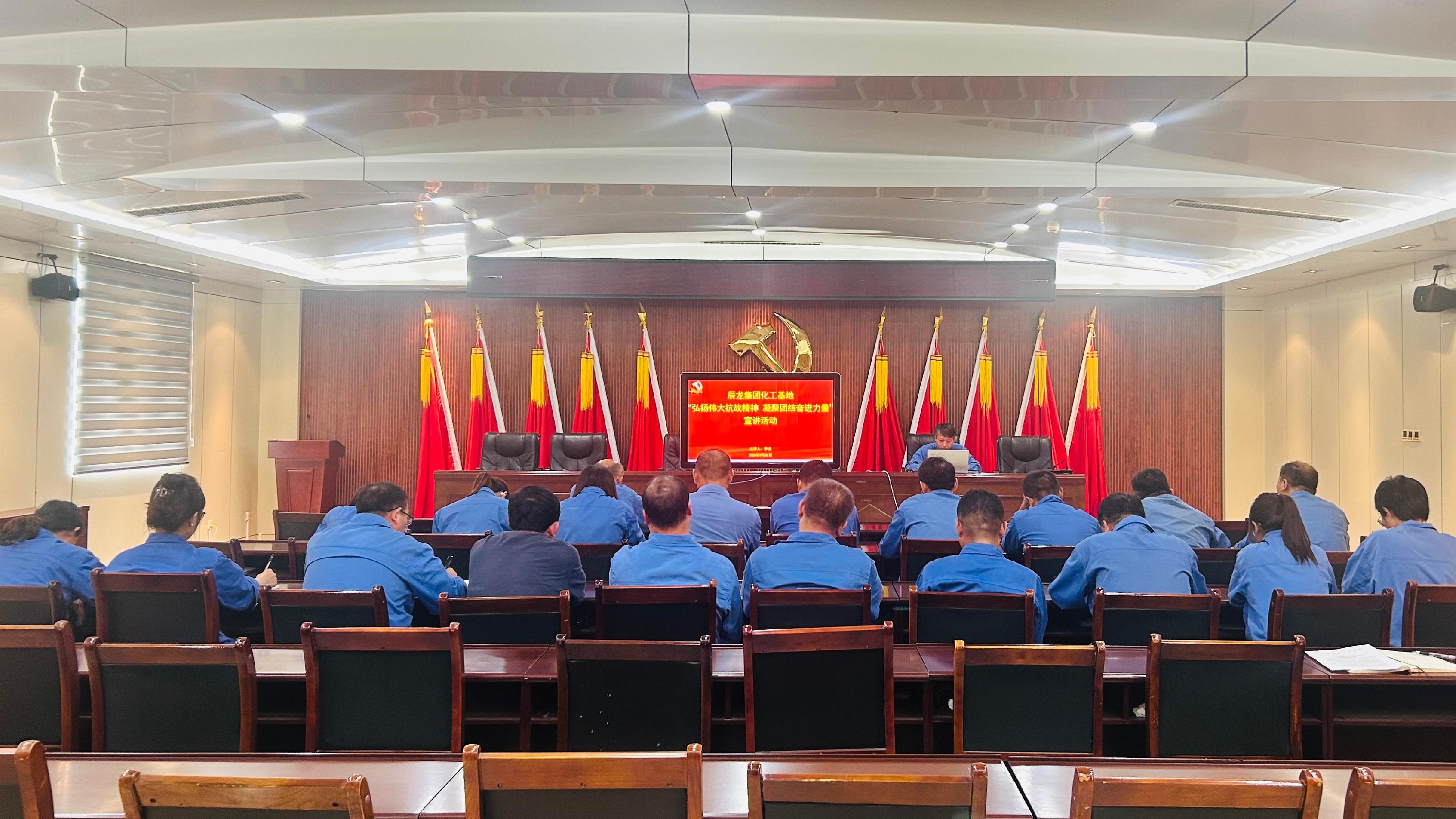 9月26日,化工基地組織開(kāi)展“弘揚(yáng)偉大抗戰(zhàn)精神,凝聚團(tuán)結(jié)奮進(jìn)力量”為主題的愛(ài)國(guó)主義教育宣講活動(dòng)?;攸h員干部職工共計(jì)20余人參加。